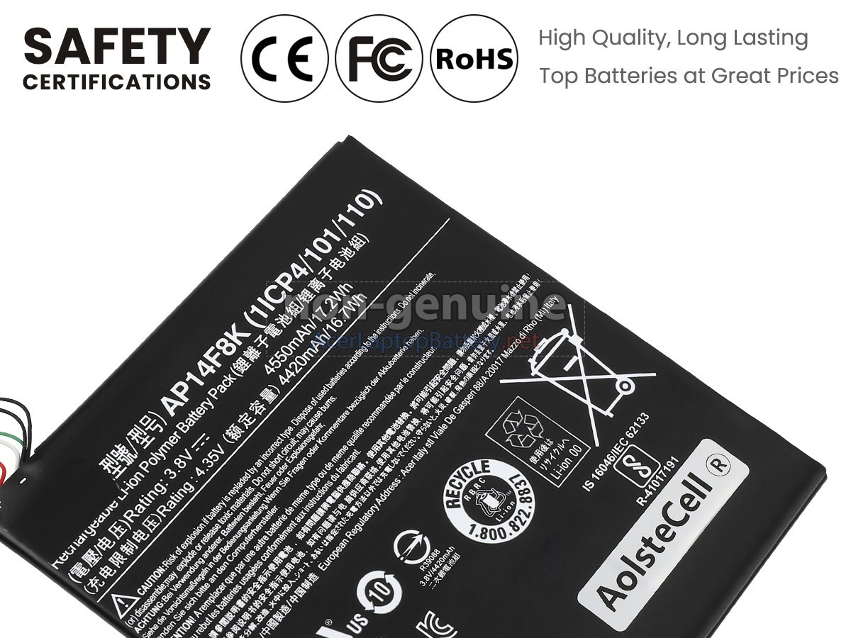 A: 100% OEM compatible to ensure compliance with your original Acer AP14E8K battery specifications (including the same size and high quality). All of our batteries for Acer AP14E8K laptops have passed international certification( CE, UL, ROHS, ISO9001/9002 ).