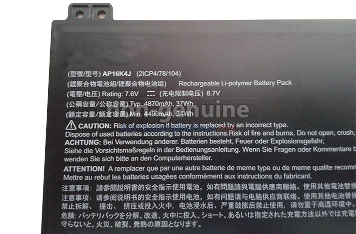 A: 100% OEM compatible to ensure compliance with your original Acer AP16K4J battery specifications (including the same size and high quality). All of our batteries for Acer AP16K4J laptops have passed international certification( CE, UL, ROHS, ISO9001/9002 ).