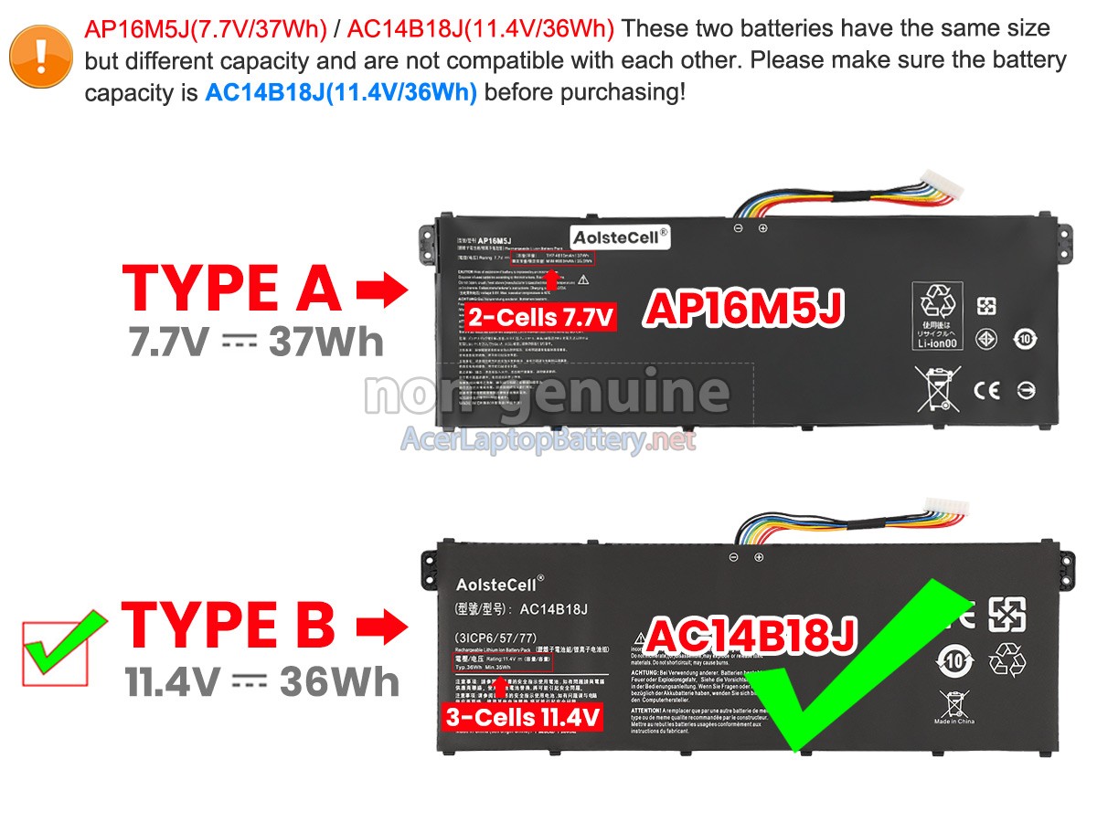A: First, find out the part number of your old battery or the model name of the laptop (e.g. "Acer Aspire 3 A315-41G-R0ZU") and then match with our product compatibility chart. Second, please compare the old battery with our product image to make sure their shapes are the same. Finally, check that the voltage (rating) is the same as your old battery. More details please click How to find one correct battery for my laptop?