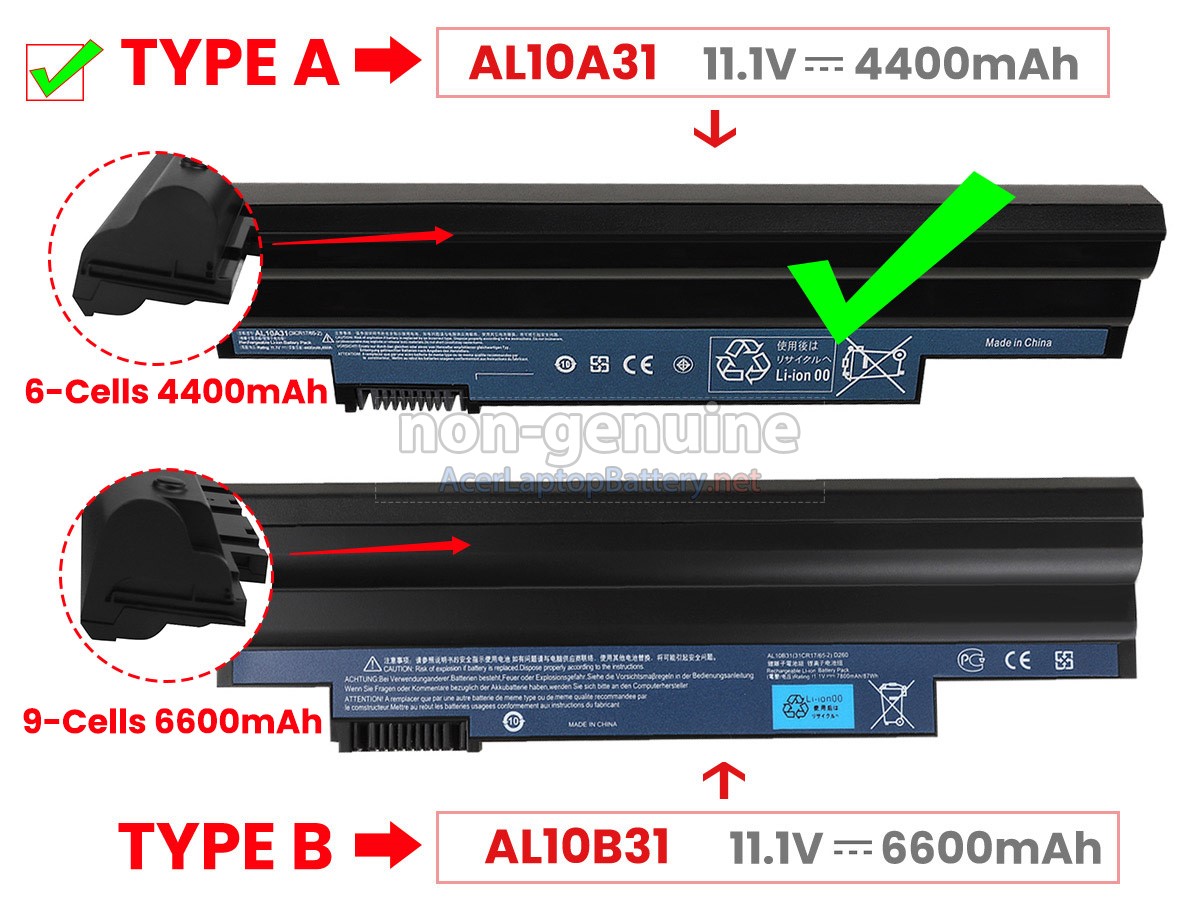 A: 100% OEM compatible to ensure compliance with your original Acer Aspire One AOD255-2136 battery specifications (including the same size and high quality). All of our batteries for Acer Aspire One AOD255-2136 laptops have passed international certification( CE, UL, ROHS, ISO9001/9002 ).