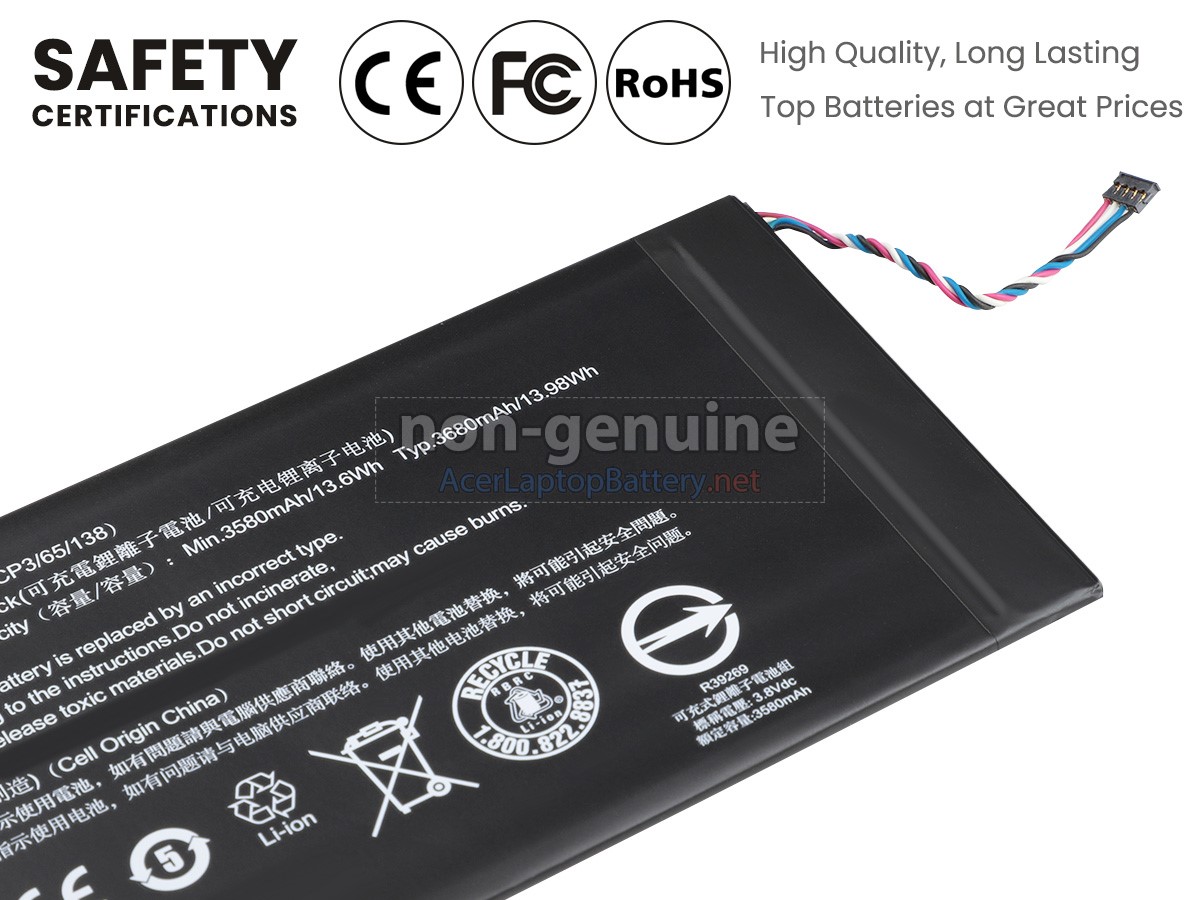 A: 100% OEM compatible to ensure compliance with your original Acer Iconia One 7 B1-730 battery specifications (including the same size and high quality). All of our batteries for Acer Iconia One 7 B1-730 laptops have passed international certification( CE, UL, ROHS, ISO9001/9002 ).