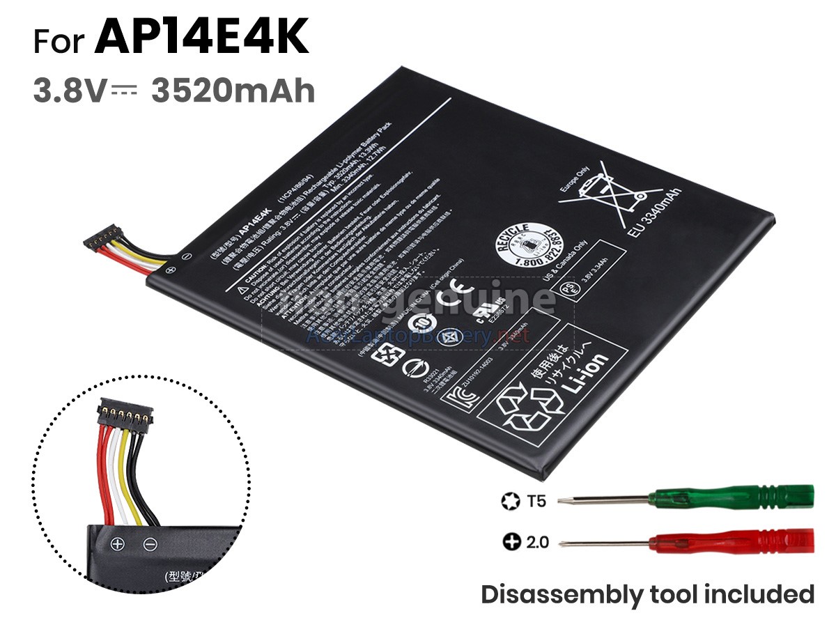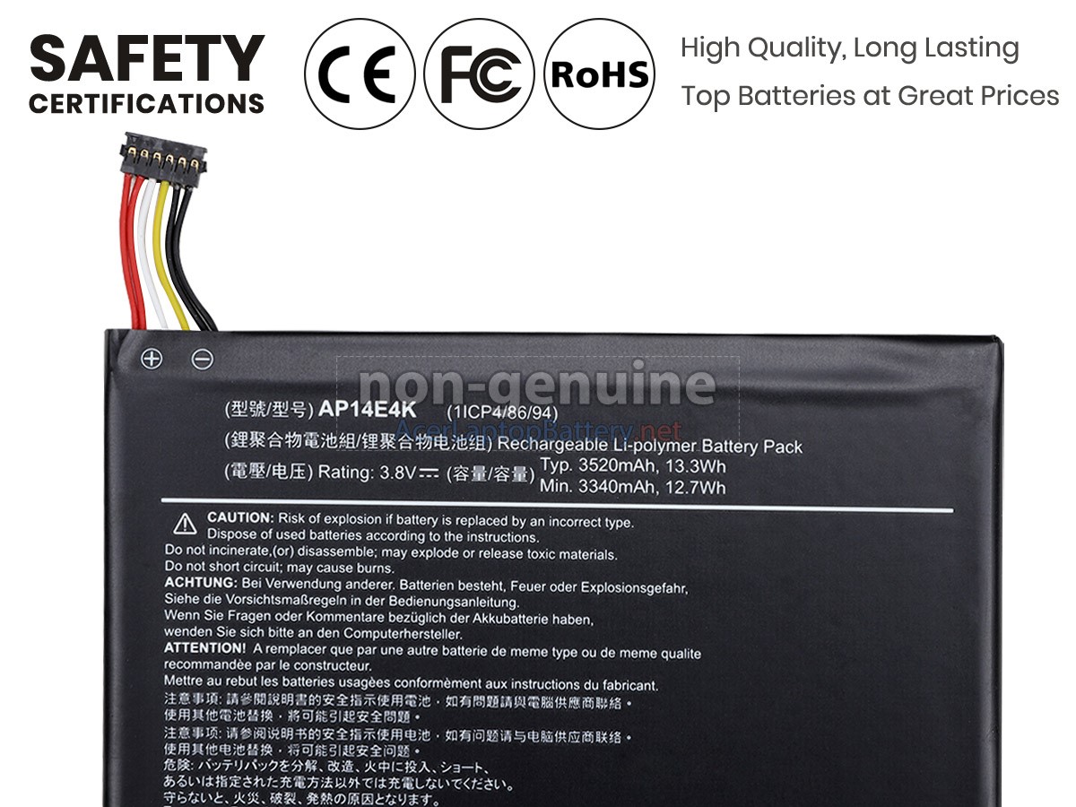 A: 100% OEM compatible to ensure compliance with your original Acer Iconia One 7 B1-750(NT.L65EE.003) battery specifications (including the same size and high quality). All of our batteries for Acer Iconia One 7 B1-750(NT.L65EE.003) laptops have passed international certification( CE, UL, ROHS, ISO9001/9002 ).