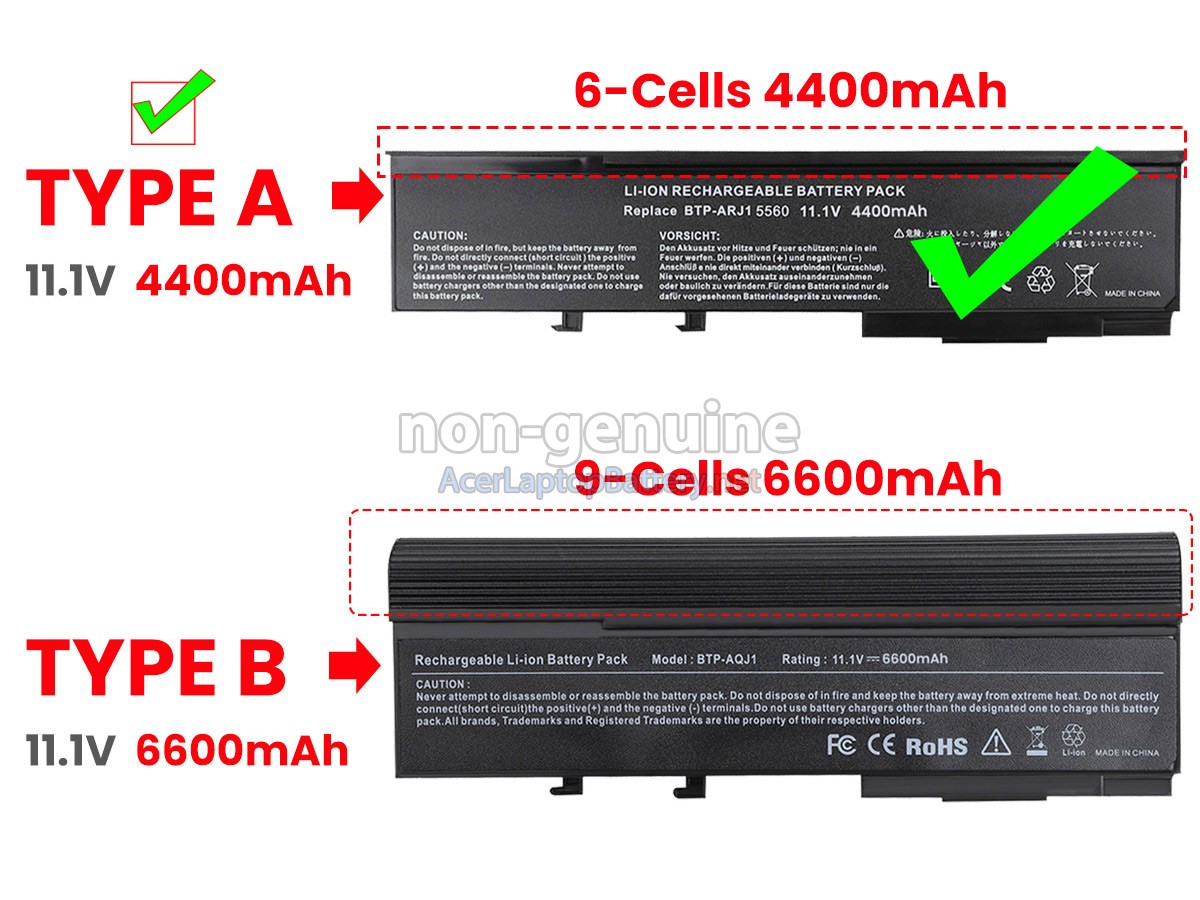 A: First, find out the part number of your old battery or the model name of the laptop (e.g. "Acer TravelMate 6492G-301G16") and then match with our product compatibility chart. Second, please compare the old battery with our product image to make sure their shapes are the same. Finally, check that the voltage (rating) is the same as your old battery. More details please click How to find one correct battery for my laptop?