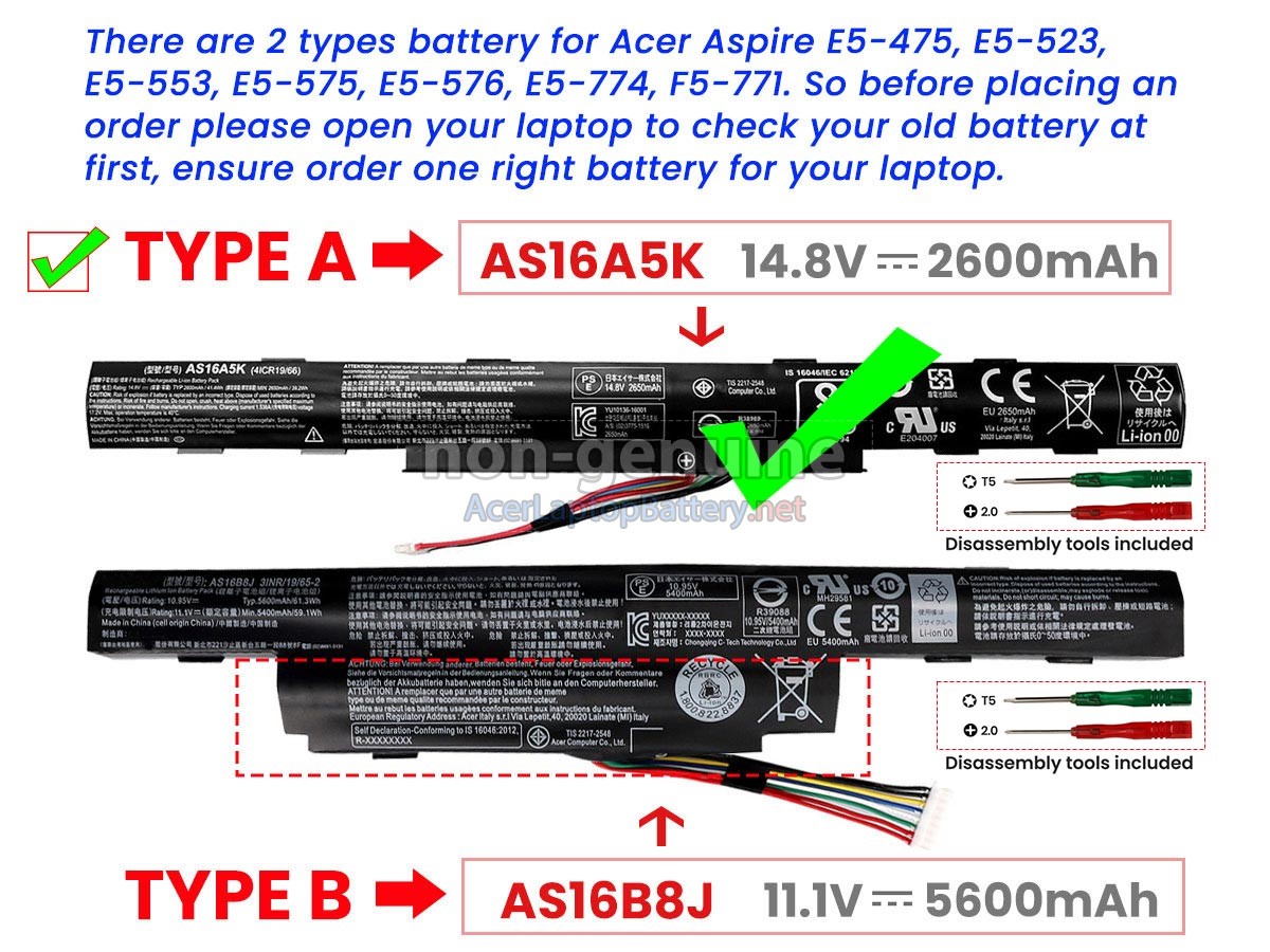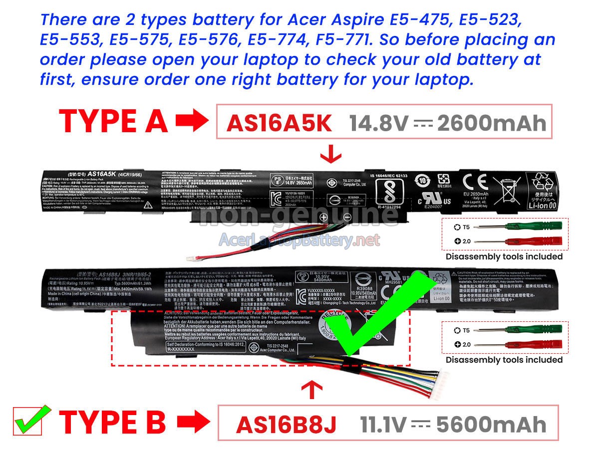 A: First, find out the part number of your old battery or the model name of the laptop (e.g. "Acer TravelMate P259-M-30YX") and then match with our product compatibility chart. Second, please compare the old battery with our product image to make sure their shapes are the same. Finally, check that the voltage (rating) is the same as your old battery. More details please click How to find one correct battery for my laptop?