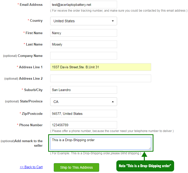 - 3Note "This is a Drop-Shipping order" on shopping cart page;