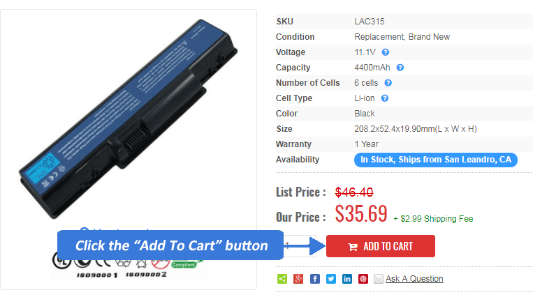 To place an order from AcerLaptopBattery.net is easy. We have provided here with a guideline to assist you on how to place an order with us.