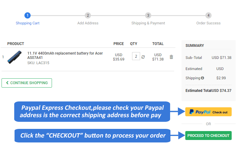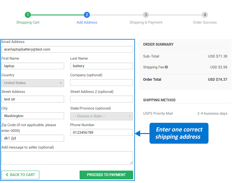 3The first checkout page is "Add Shipping Address",you can add or change shipping address, and enter "Special Instructions Or Comments" for your order. e.g. to an different dropship address.
